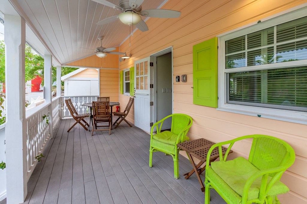Recently restored, this charming 19th-century cottage and guesthouse is located right in the center of Hope Town. Relax on the front porch after a sunny day at beach. The main house is open and airy with two bedrooms, one queen-size and the other twin-bedded. Both bedrooms share a large bathroom. The kitchen is fully equipped with granite counters, stainless steel appliances and a breakfast bar. The one-bedroom guesthouse is adjacent to the main house and has its own private bathroom. Both houses are just steps away from beaches, shops and restaurants. Maximum 6 People. Rental subject to availability. Must be taken within one year unless pre-approved to do otherwise. Full details: https://www.elbowcayproperties.com/vacation-rentals/green-shutters